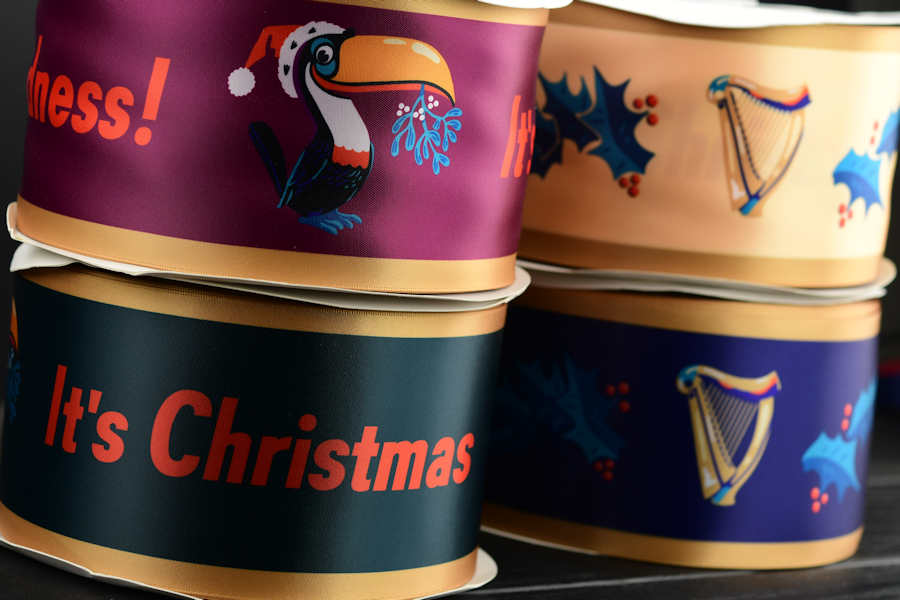 Meiltä saat kätevästi satiinilahjanauhat täysvärisenä omalla painatuksellasi alkaen 100 metristä. Lahjanauhat satiinisena painetaan polyesterinauhaan jossa on päärmätty reuna.