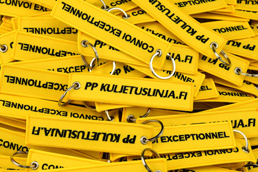 Kudotut, brodeeratut tai painetut RBF-avaimenperät