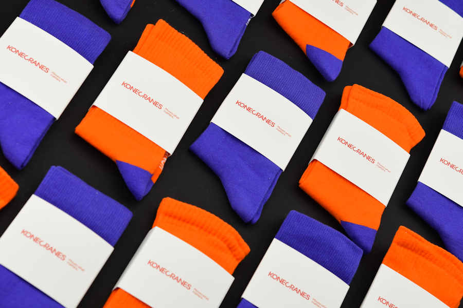 Kudotut sukat omalla logolla ovat takuuvarma hitti